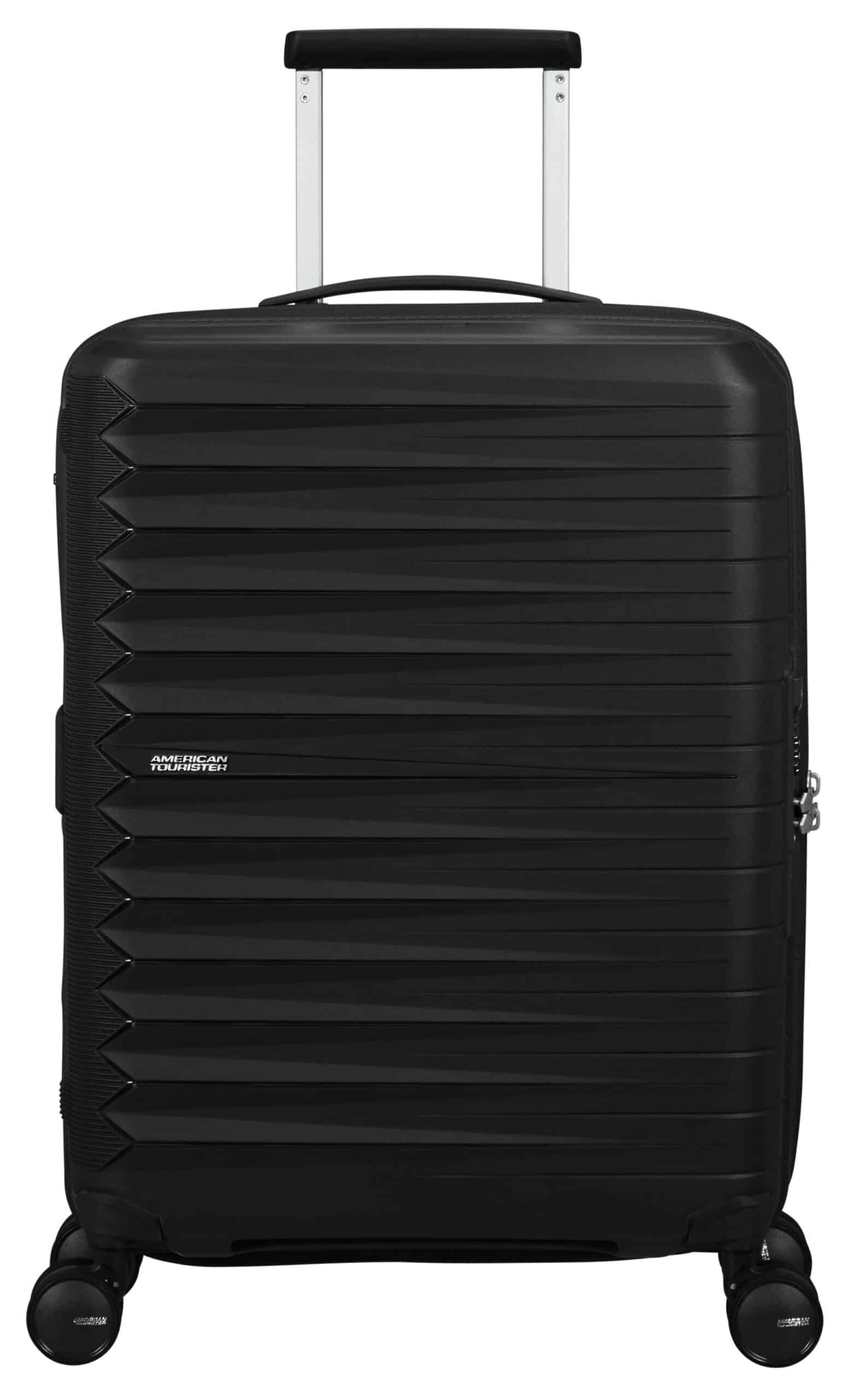 Der American Tourister „FASTFORWARD“ Hartschalen-Trolley in flash schwarz mit 36 Litern Fassungsvermögen und 4 Rollen vereint Design und Funktionalität.
