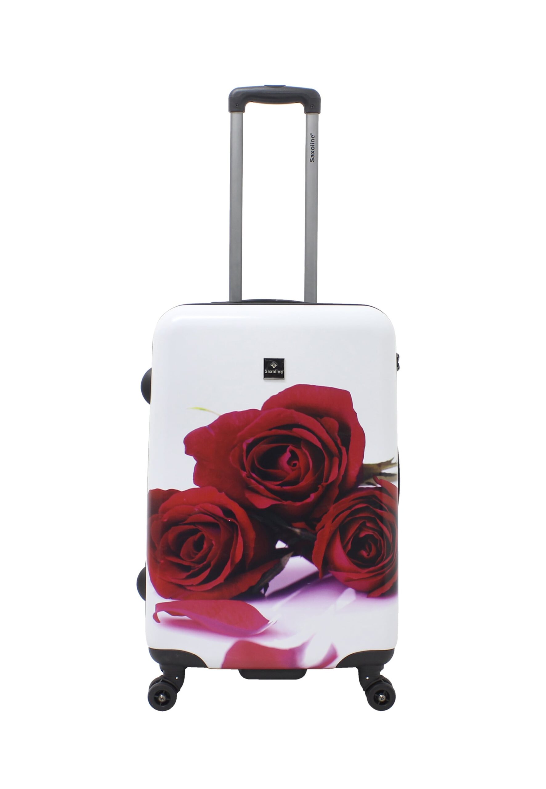 Der Saxoline Koffer „Roses“ besticht durch sein unverkennbares Design. Das florale Muster, inspiriert von der Schönheit der Rosen, verleiht jedem Gepäckstück eine besondere Note und hebt es von der Masse ab. Die Kombination aus einem eleganten Weiß als Grundfarbe und den lebendigen roten Rosen sorgt für einen Hingucker, der Ihre Persönlichkeit unterstreicht. Dieses Design ist nicht nur ästhetisch ansprechend, sondern auch praktisch: Es erleichtert die Identifizierung Ihres Gepäcks am Gepäckband erheblich.